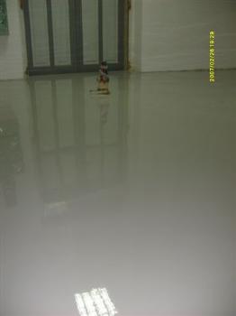 Fresatura del pavimento grezzo utilizzando un macchinario a disco diamantato abbinato contemporaneamente ad un battitore di polvere; applicazione di resina epossidica di mm 1, tipo Primer con quarzo di dimensioni 0,5; rivestimento finale con applicazione di ulteriore resina di tipo Plavipast Ral 5015 della ditta Sivit (TO).
